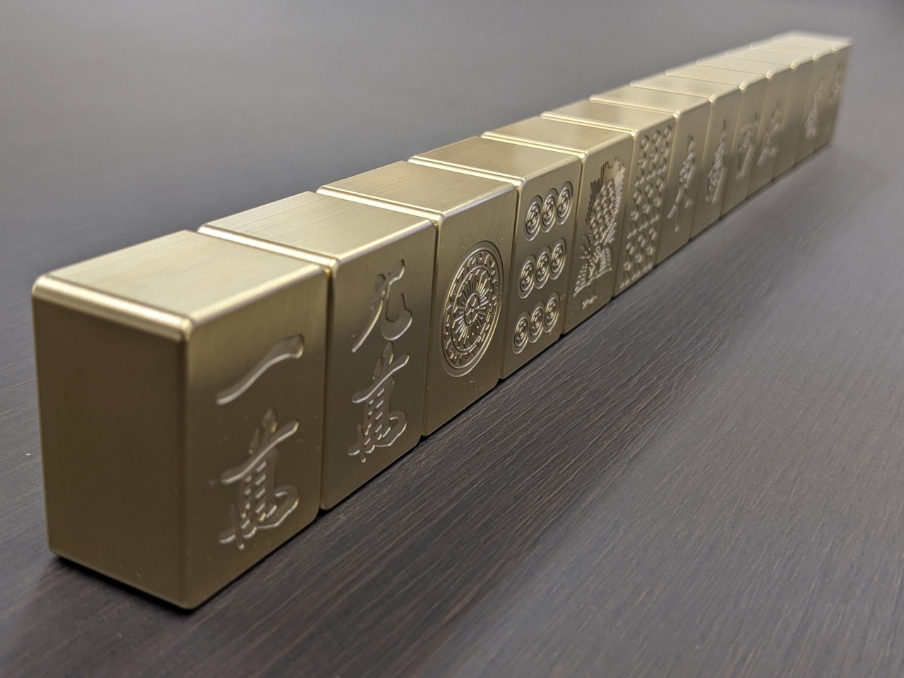 真鍮から削り出した、ちょっと特別な麻雀牌。